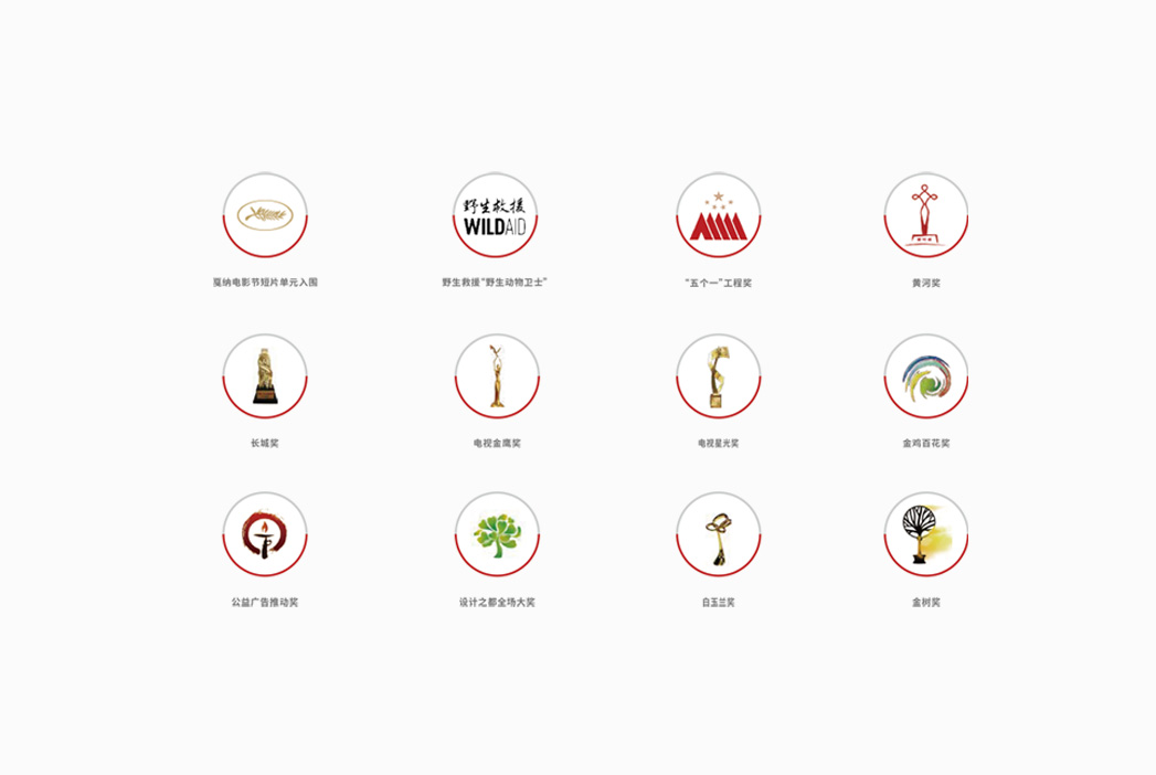 囊括“五个一”工程、电视金鹰、电视星光、金鸡百花、白玉兰贡献、长城、黄河、戛纳、全球野生动物卫士等多项国内国际大奖